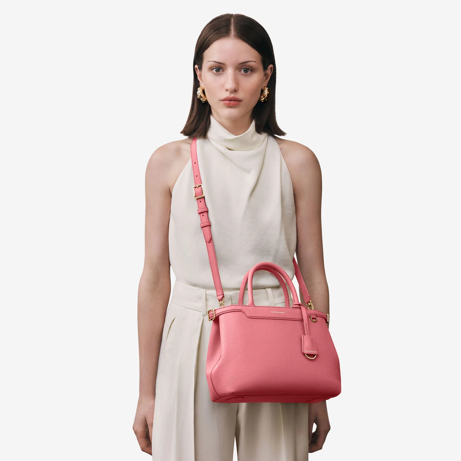 A flagship creation celebrating eight years of MAISON de SABRÉ craftsmanship, The Medium Palais embodies nine iconic brand codes handcrafted in supple calf leather that softens beautifully over time. Its fluid silhouette transports you seamlessly from brunch to gala, with adjustable belting, a secure bridge clip, rolled leather handles, a detachable crossbody strap, and contrast-hued natural suede leather lining exposed at the characteristic sideseam. A generous interior stows an iPhone 16 Pro Max, pouches, a water bottle and daily essentials without compromising form. A SABRÉMOJI™ Charm Link allows for personalisation through signature Charms, while its elegant presence — a smaller sibling to The Large Palais — empowers every ensemble.Â