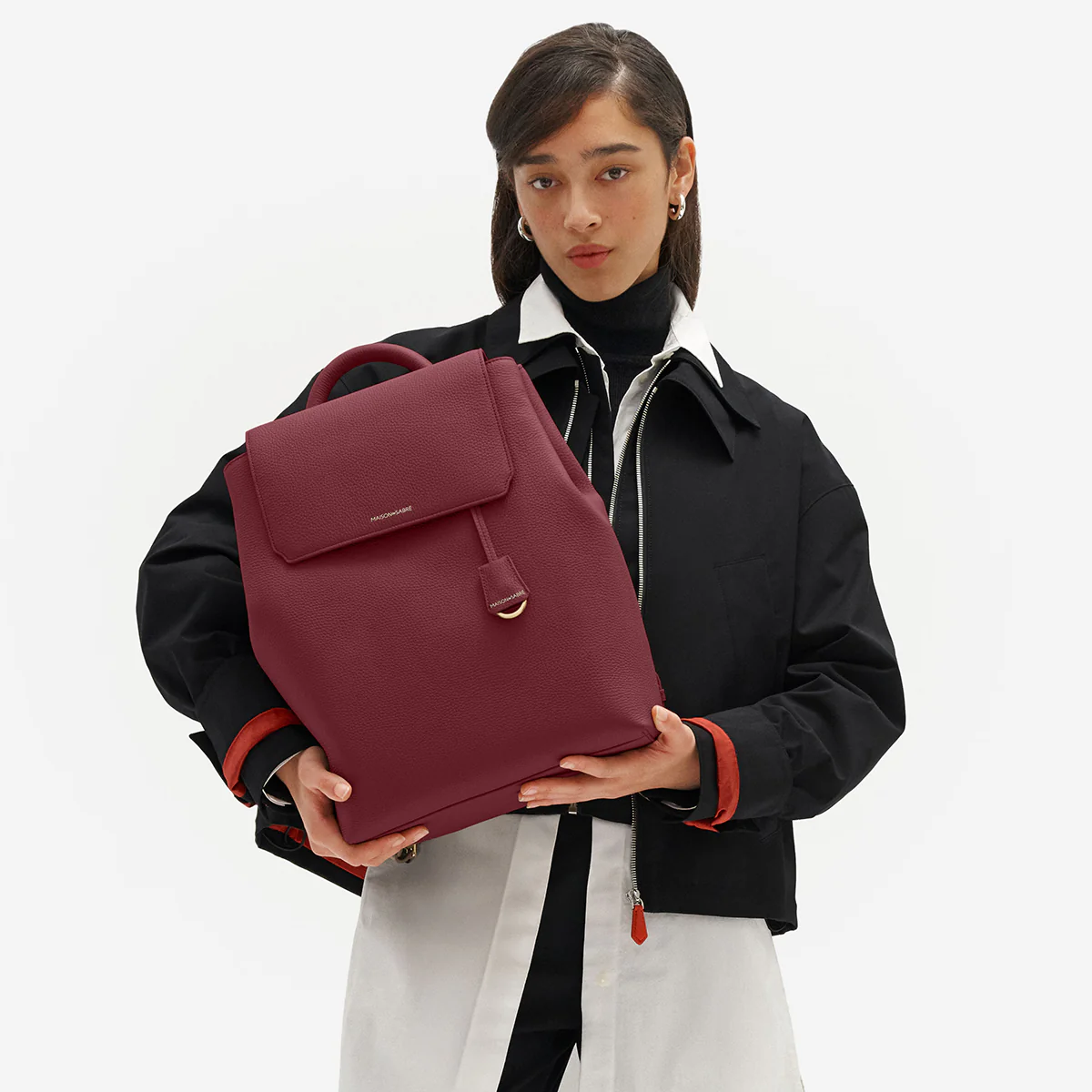 Our softest hands-free companion, perfected for all-day adventures. Crafted from the world’s most luxurious full-grain leather, the unisex statement arrives with sumptuous curves, broad-set padded leather straps for enhanced, unobtrusive wear, and unparalleled organisation. Featuring a priority-access rear zipped pocket to stow your phone and travel documents, a dedicated internal padded sleeve for devices up to 14", powerful dual-closure via a magnetic snap and dynamic bridge clip, four internal pockets, and an internal key clip for keys and additional MAISON de SABRÉ clippables, the ultra-plush sidekick has your back wherever your ticket takes you.  Â